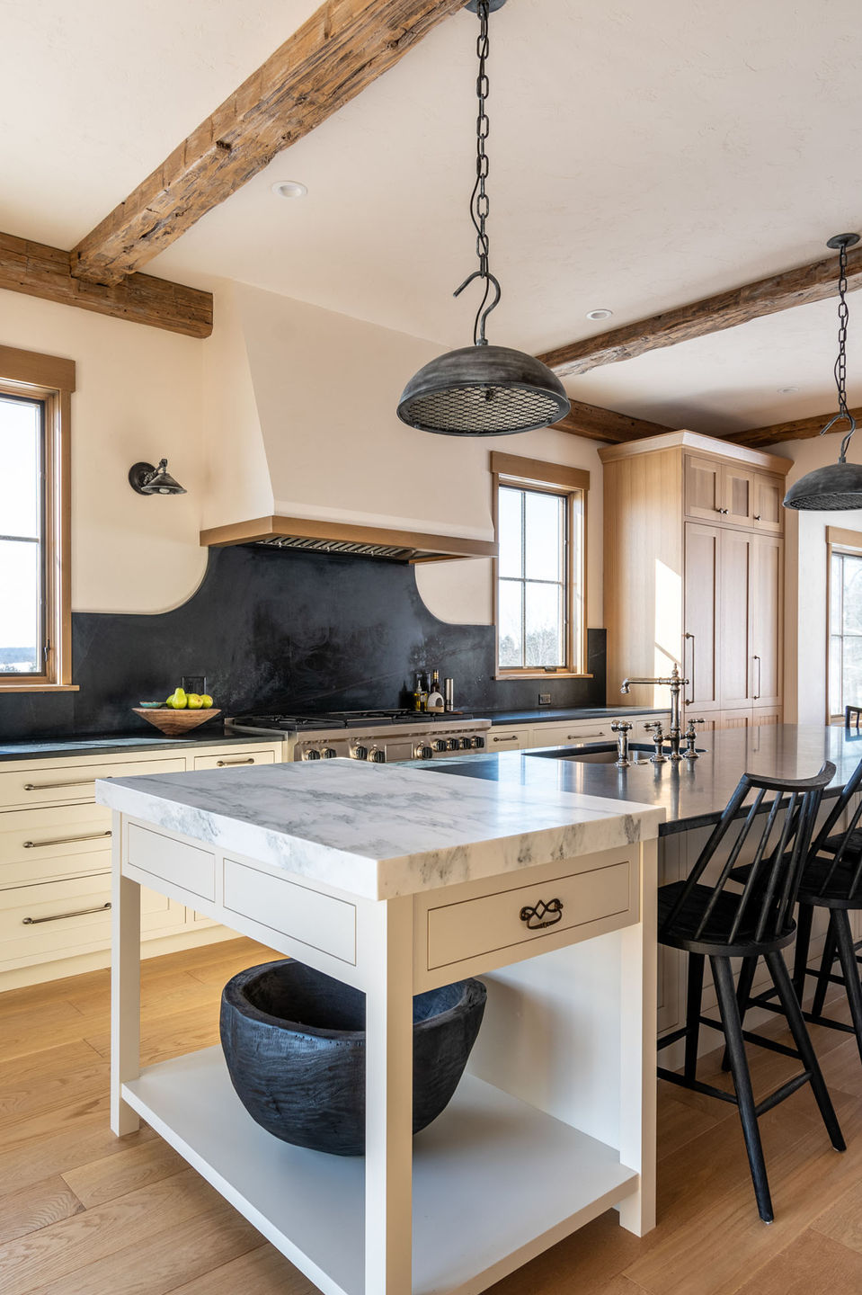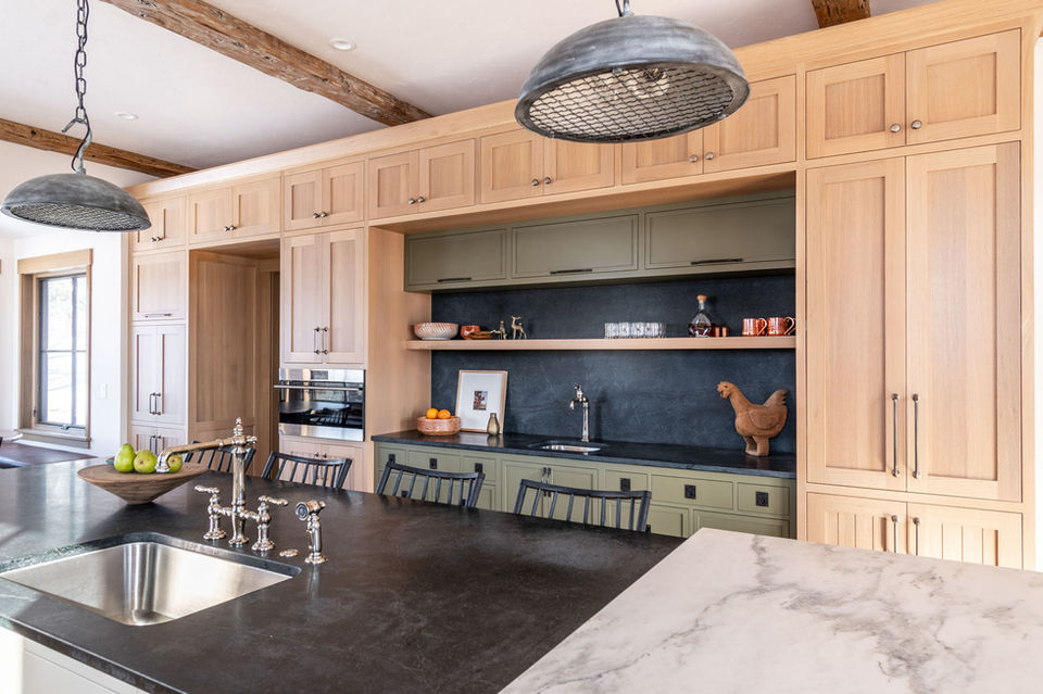 Featuring breathtaking, sweeping views of the surrounding landscape, this full service new build takes its cue from the natural beauty all around it. Mixed materials and found objects find the balance between old and new. With space planning and a design intended for frequent entertaining, we created an expansive kitchen and pantry paired with vignettes to encourage sitting, conversing, and gathering.